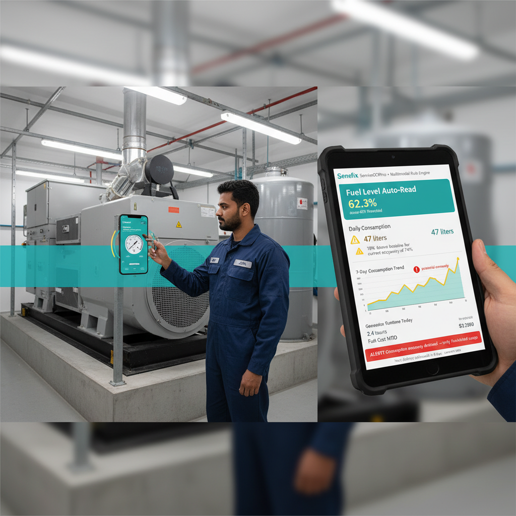ServiceOCRPro automates fuel gauge and generator panel reading, proven at Cadagua wastewater facility for industrial gauge digitization. AI establishes usage baselines and detects consumption anomalies indicating theft, leaks, or inefficient operation.