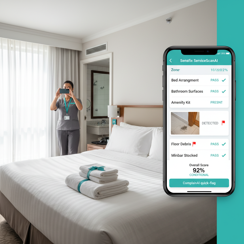 Fari Lens (CV platform)Room cleanliness verification via computer visionMissed issues reduced from 22% to 2%; guest reported issues dropped from 18 to 3/month; review ratings improved from 4.1 to 4.7/5