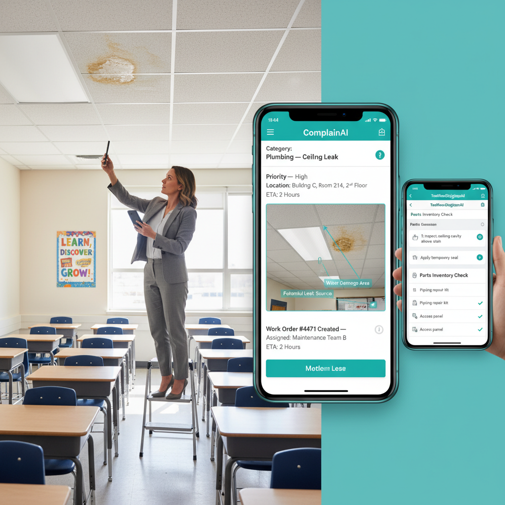 ReportAI + TaskflowDigitizerAI, the same AI-powered issue classification and workflow digitization proven across commercial building portfolios on 3 continents. Staff scan any issue via mobile app; AI classifies, prioritizes, and routes automatically.