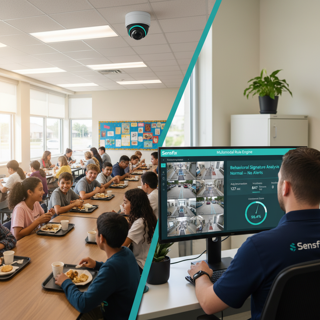 Sensfix Multimodal Rule Engine deploys as an AI overlay on existing CCTV, the same real-time video analytics proven at Port of Tampa for detecting hazardous activities and unauthorized access. CV models analyze behavioral signatures (rapid movements, crowd formations) without facial recognition, following the "detect, don’t identify" privacy paradigm.