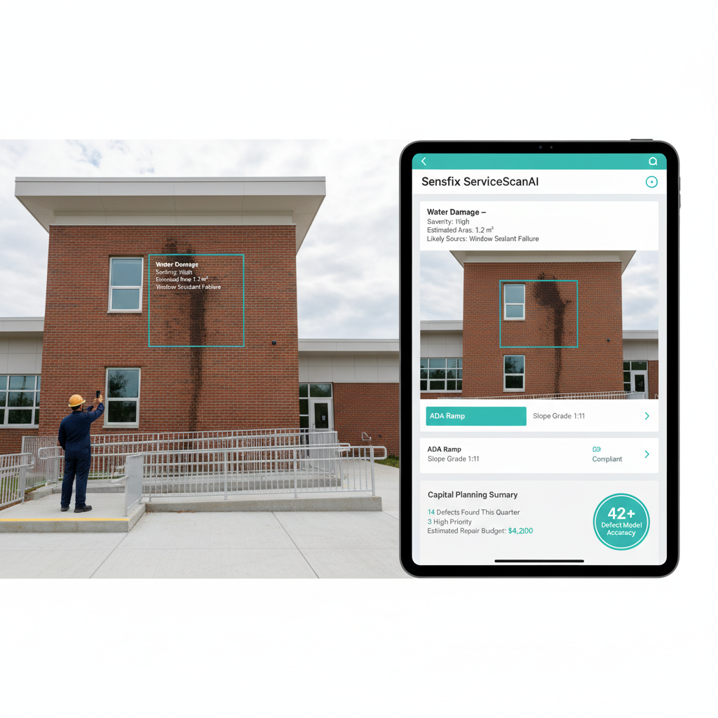 | 42+ defect detection models (0.2mm resolution) | Industrial facilities, 3 continents | Building inspection, playground safety, roof/facade condition, ADA compliance |
