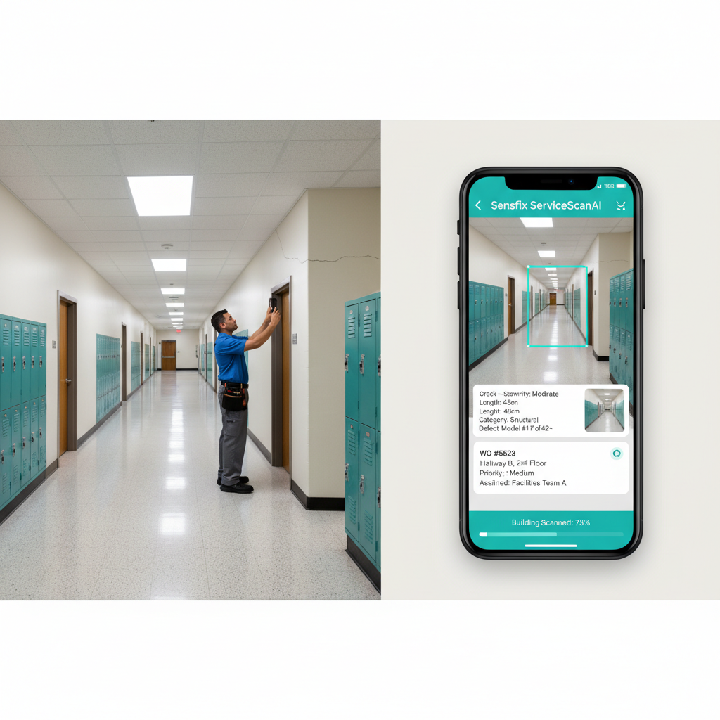 ServiceOCRPro reads HVAC gauges and panel displays. FormifyPro digitizes energy audit checklists. The critical advantage over building-management-system-specific solutions like OpenBlue: Sensfix is hardware-agnostic and works with any BMS manufacturer, delivering energy optimization alongside maintenance, safety, and compliance. One platform for the entire school.