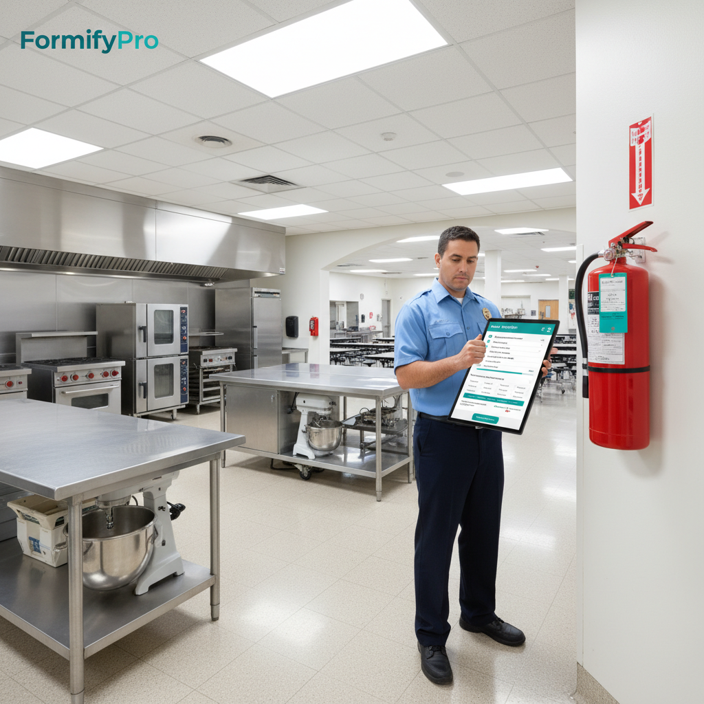 FormifyPro, the same digital inspection form platform proven across enterprise deployments for regulatory compliance. Staff create custom templates for any compliance standard (fire safety, health department, ADA, custodial). Rule-based alerts trigger when values exceed thresholds.