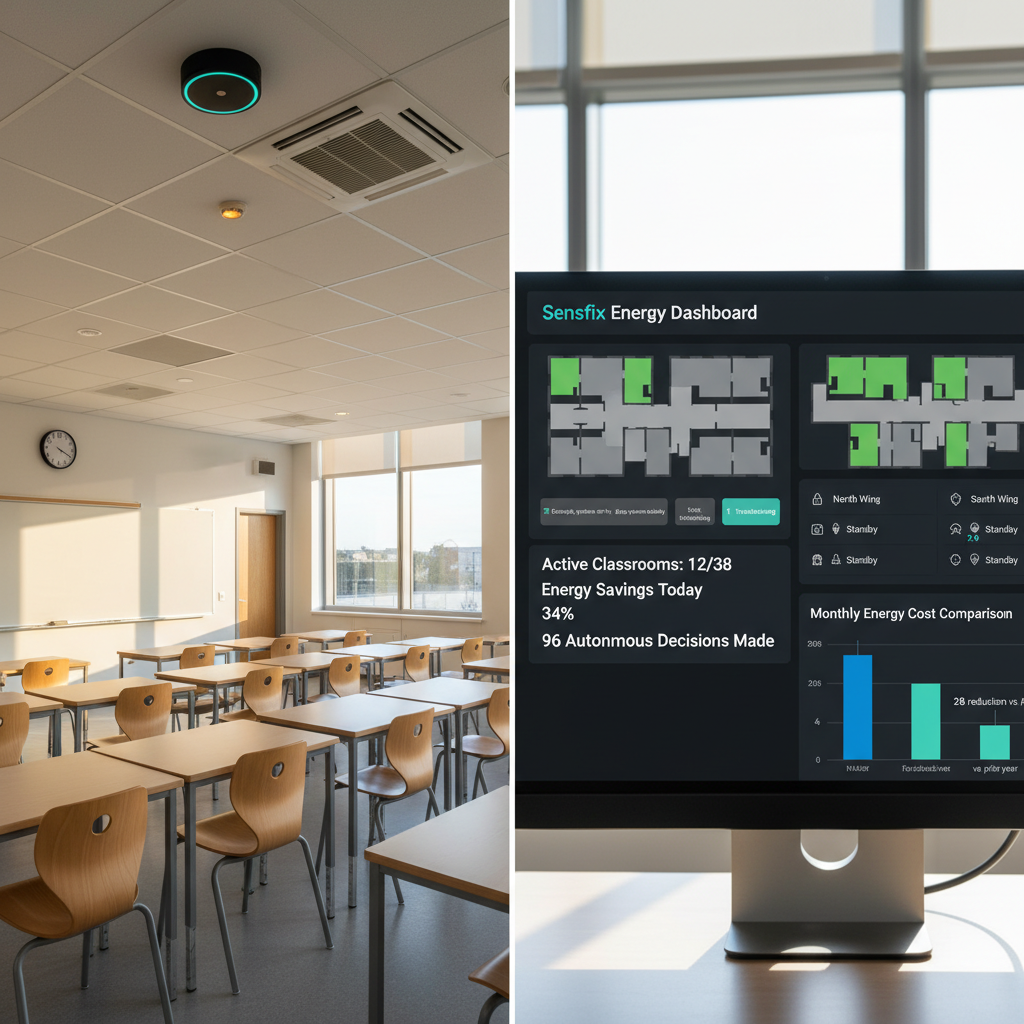 US schools spend $14 billion annually on energy, the second-largest expense after personnel. An estimated 25–40% is wasted through HVAC running in empty classrooms, lights on in vacant rooms, and fixed schedules that don't match actual occupancy patterns. Facilities staff manually adjust thermostats across dozens of classrooms. Occupancy-based control can reduce classroom energy waste by up to 68%.