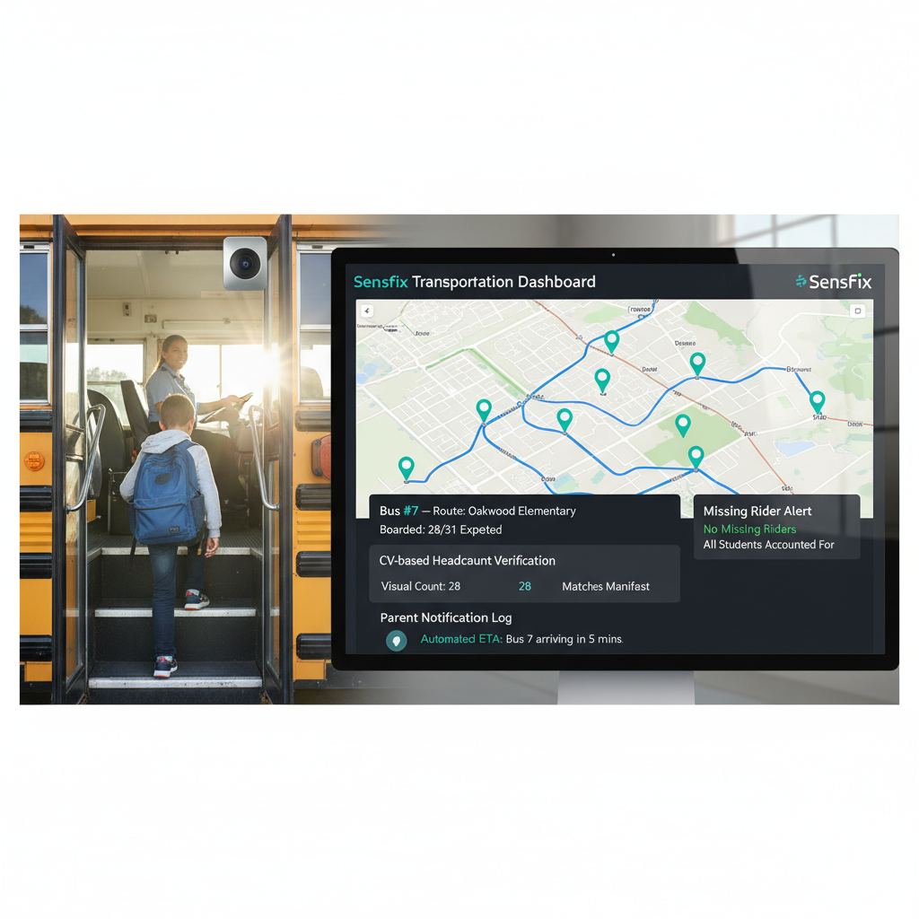 Sensfix Multimodal Rule Engine on bus interior cameras provides CV-based people counting at entry/exit points, the same people counting proven at commercial buildings on 3 continents. Complements PikMyKid’s rider assignment system by adding visual verification.