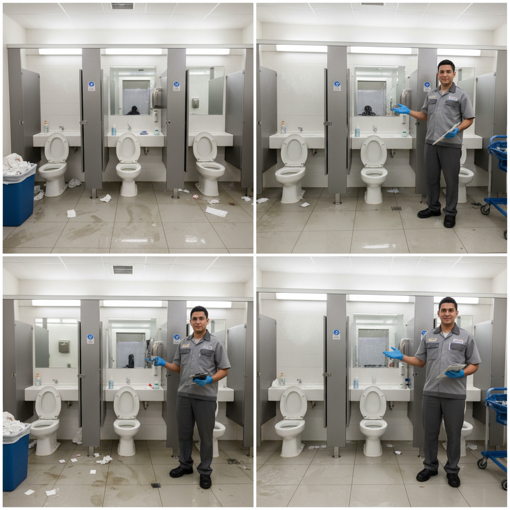 Custodial supervisor photographs cleaned area (before/after). AI assigns cleanliness score (1-5 per APPA standards), flags remaining defects (missed spots, stains, debris). Creates photo-documented QC record per shift. Identifies cleaning quality trends by zone, shift, and team.
